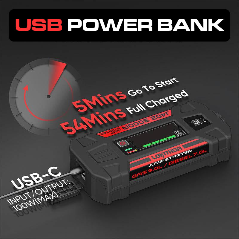 Choose either the Lokithor Essential 4-in-1 or Lokithor Buddy 5-in-1 Rescue Jump Starters