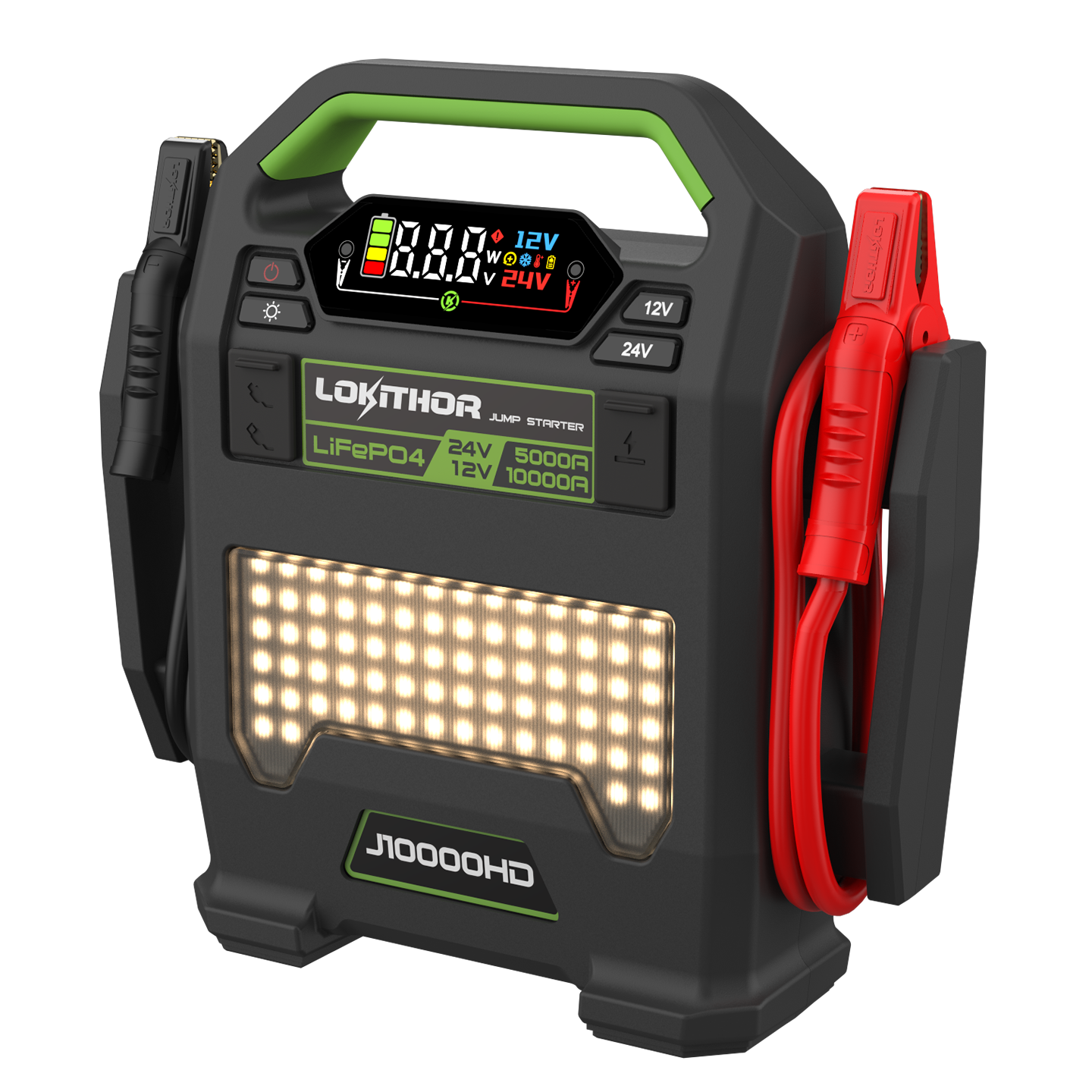 LOKITHOR Big Dog 3-in-1 Heavy Duty Multifunction Rescue Jump Starter 10000A @ 12v & 5000A @ 24v + LED Spotlight + USB Power Bank - LiFePO4 Tech