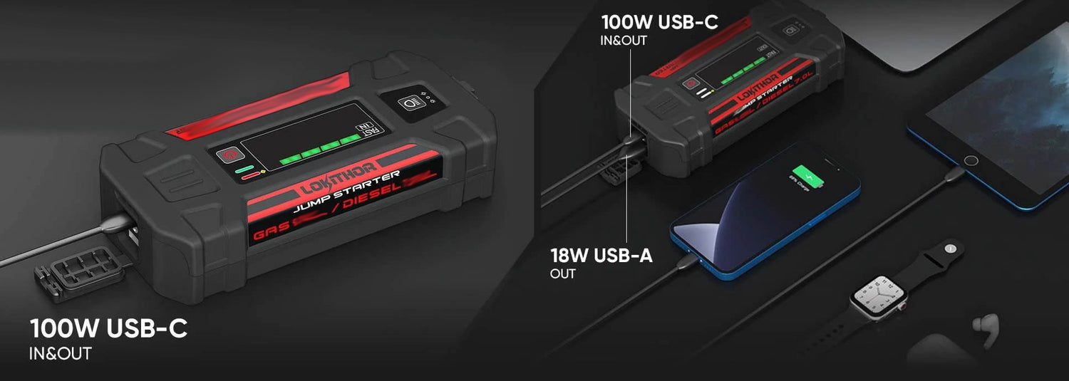 Choose either the Lokithor Essential 4-in-1 or Lokithor Buddy 5-in-1 Rescue Jump Starters